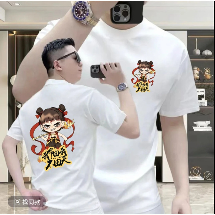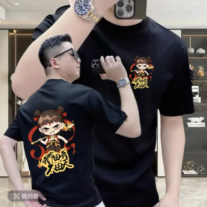 哪吒印花短袖男T恤夏季純棉半袖動漫帥氣印花潮流短袖