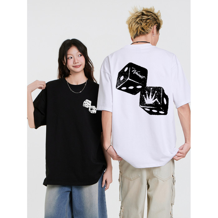 WAINOT潮牌重磅純棉骰子印花短袖男T恤情侶上衣高街嘻哈2025夏季