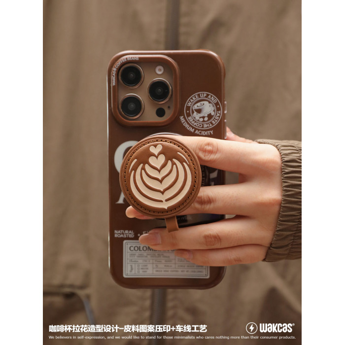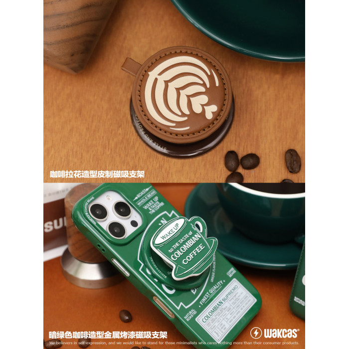 咖啡磁吸手機支架個性潮流原創設計金屬磁吸手機支架皮質新款支架