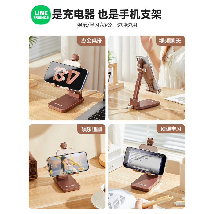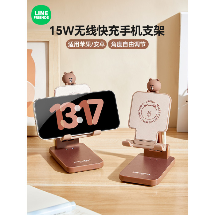 布朗熊手機支架無線充電器快充適用安卓華爲蘋果多功能二合一底座