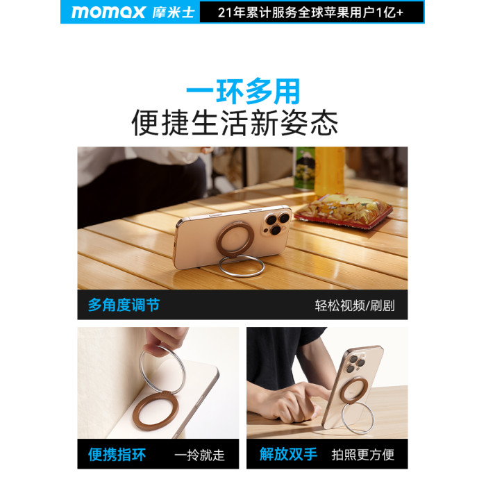 MOMAX摩米士磁吸手機支架指環扣可攜式可折曡旋轉超薄桌面支撐架指環支架背貼殼2025新款適用蘋果iphone16華爲