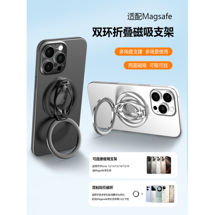 雙面磁吸手機支架Magsafe強磁力車用桌面折曡懶人支撐架適用蘋果