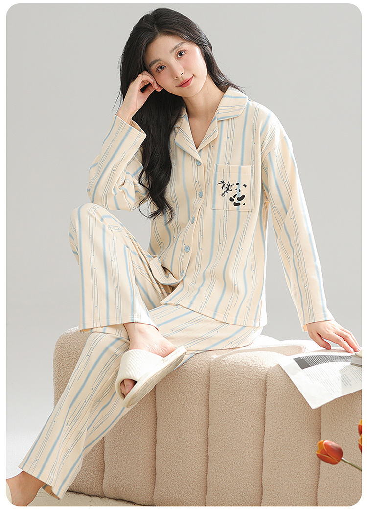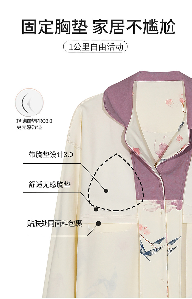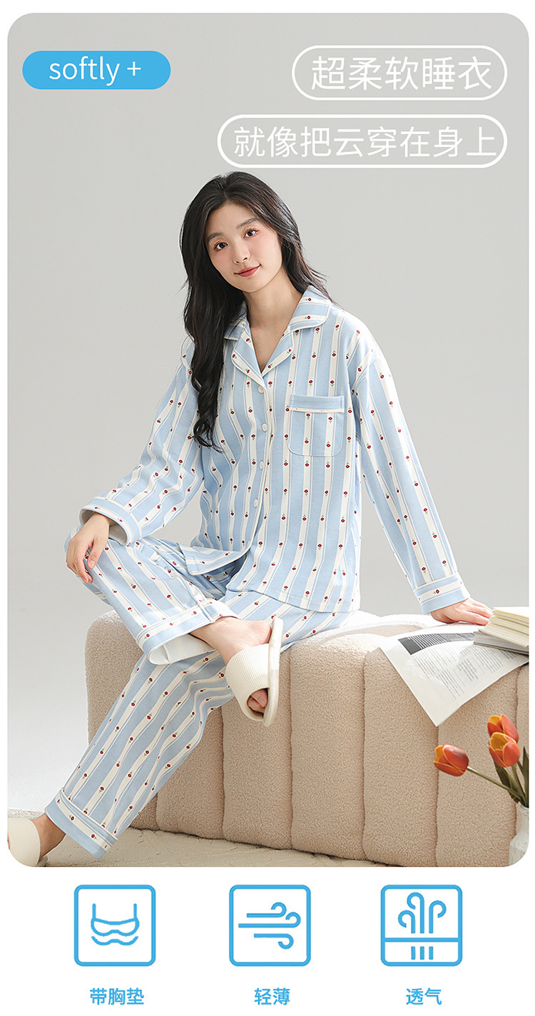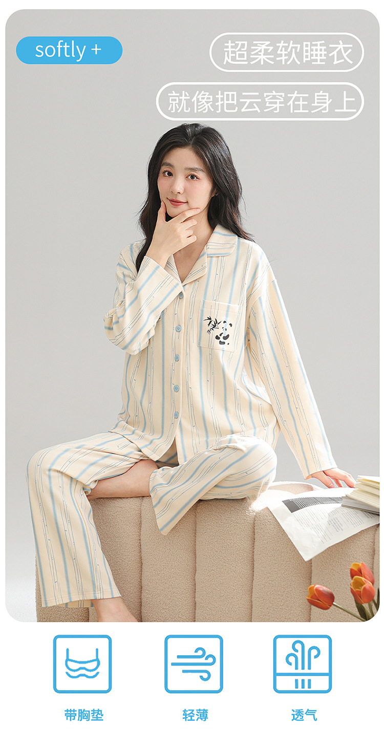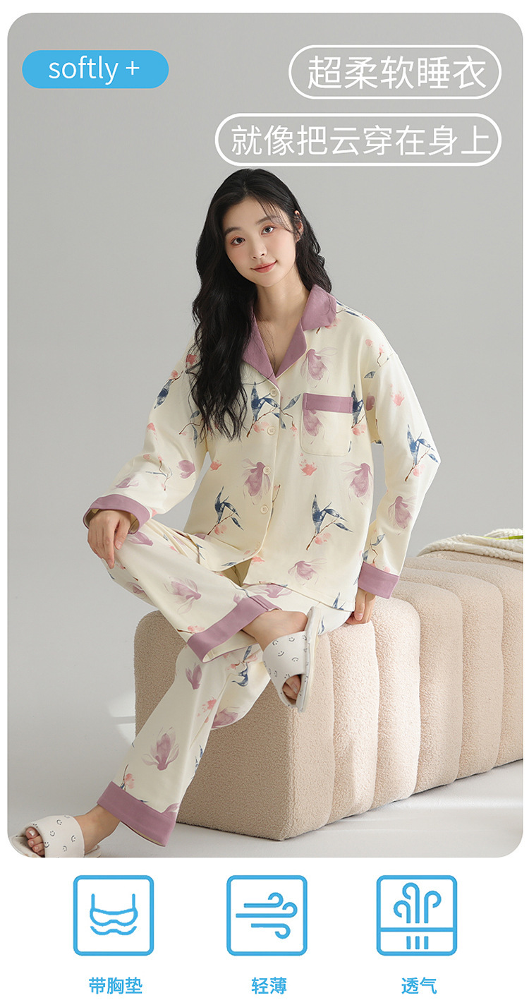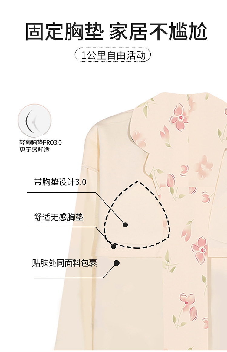 01帶胸衣女士2024新款春秋季純棉長袖可外穿寬松家居服全棉套裝