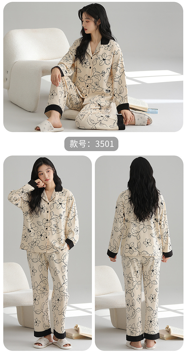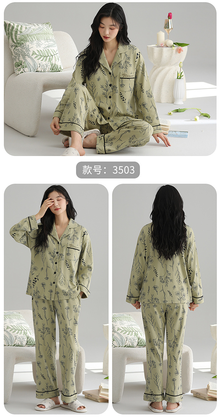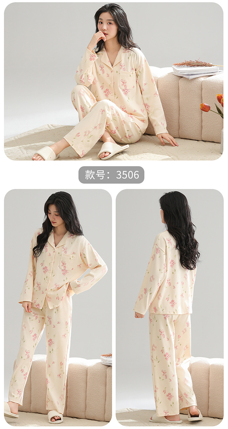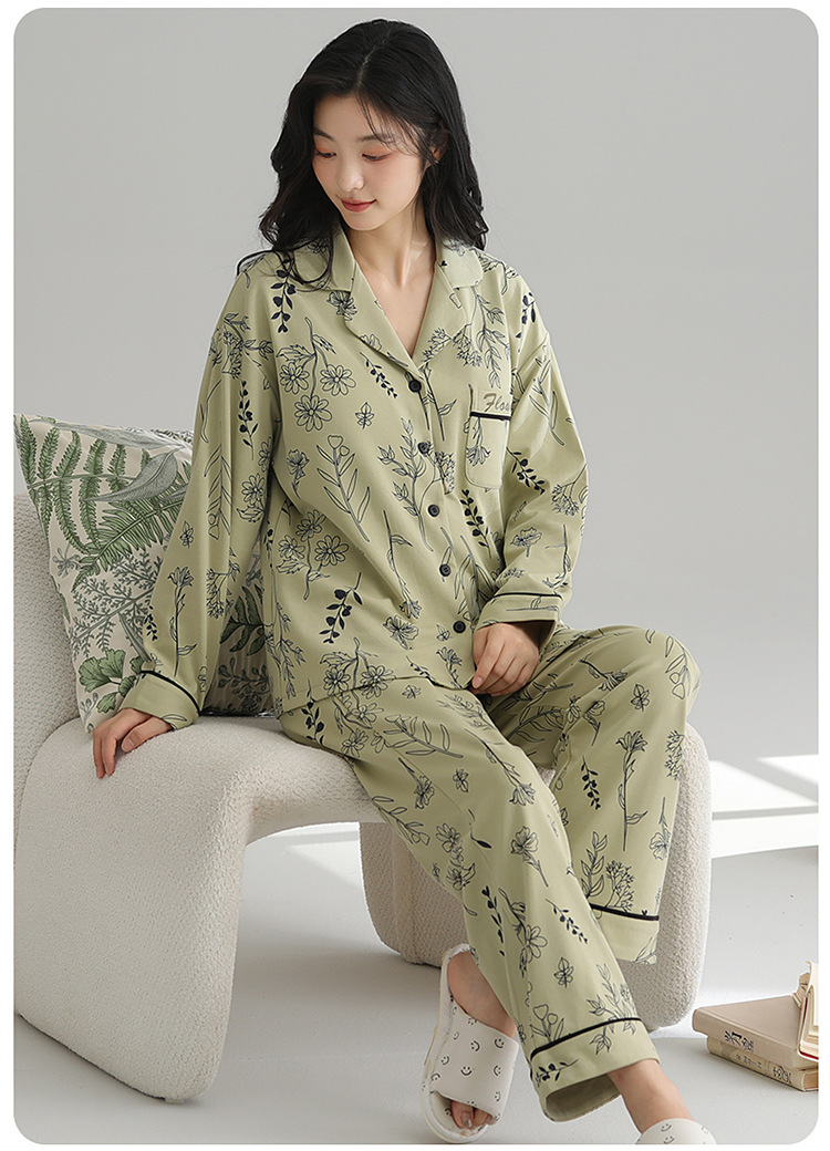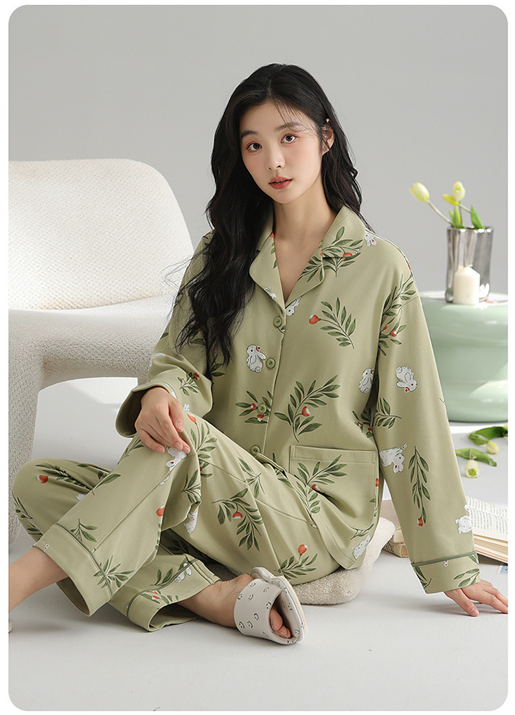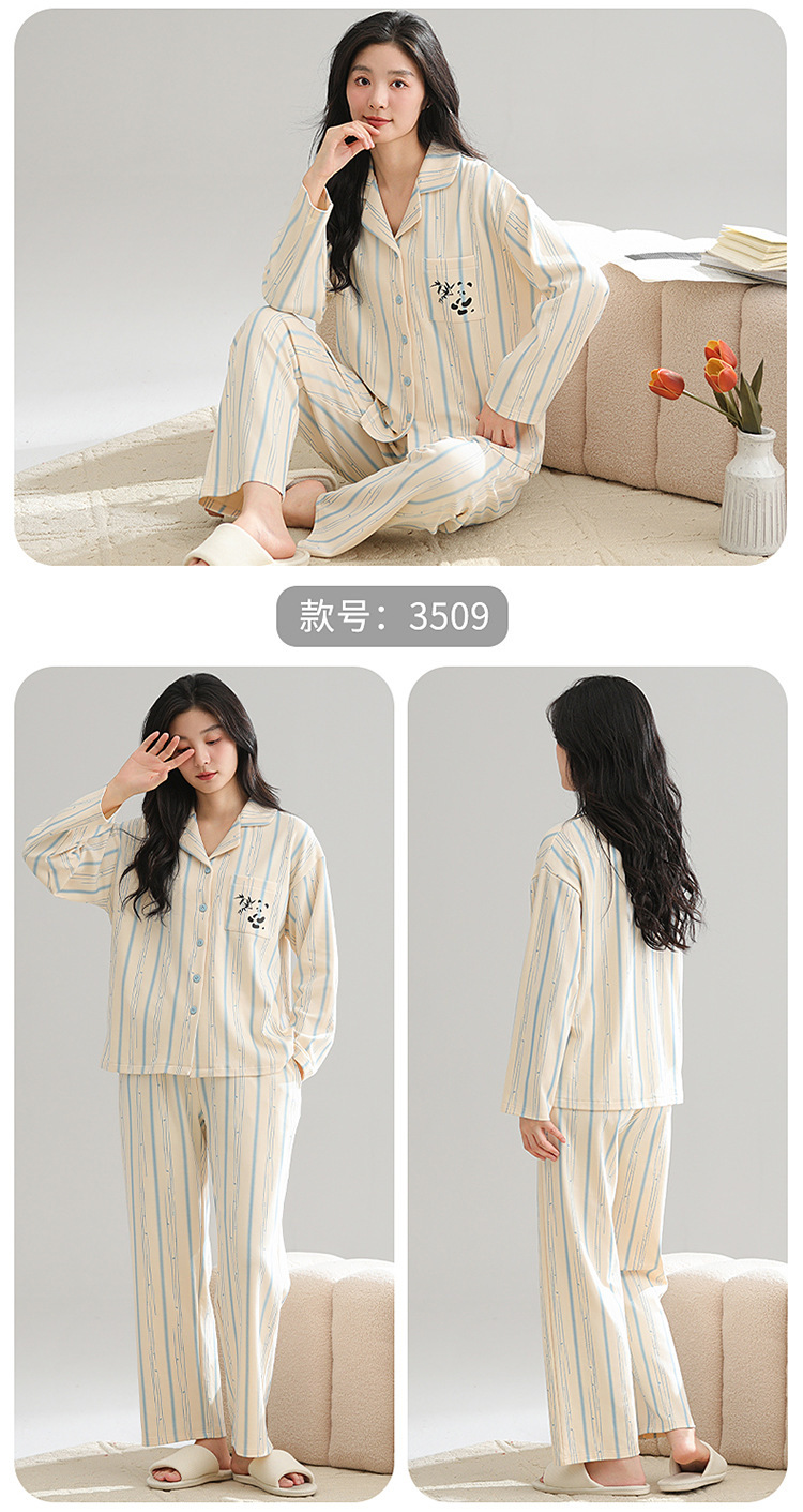 01帶胸衣女士2024新款春秋季純棉長袖可外穿寬松家居服全棉套裝