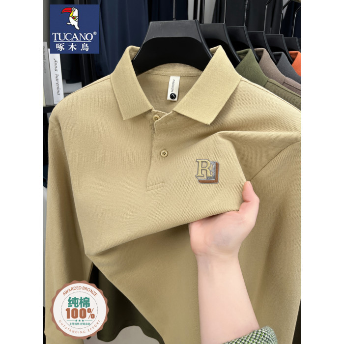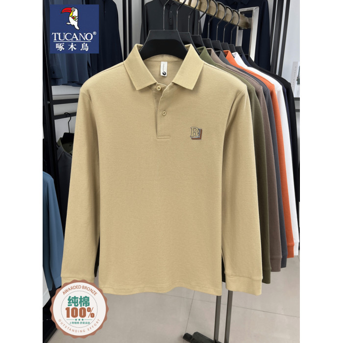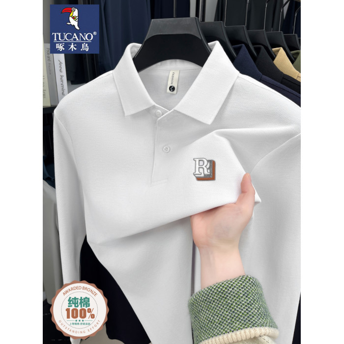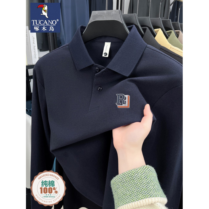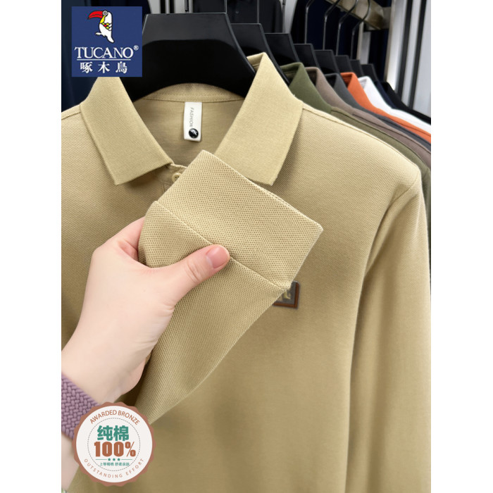 啄木鳥純棉長袖polo衫男T恤翻領商務休閒春秋打底衫全棉爸爸上衣