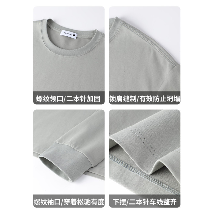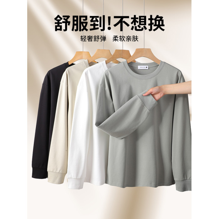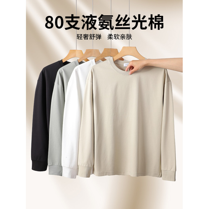 80支雙面長絨棉液氨長袖男T恤春季束口男款高級收口男士打底衫
