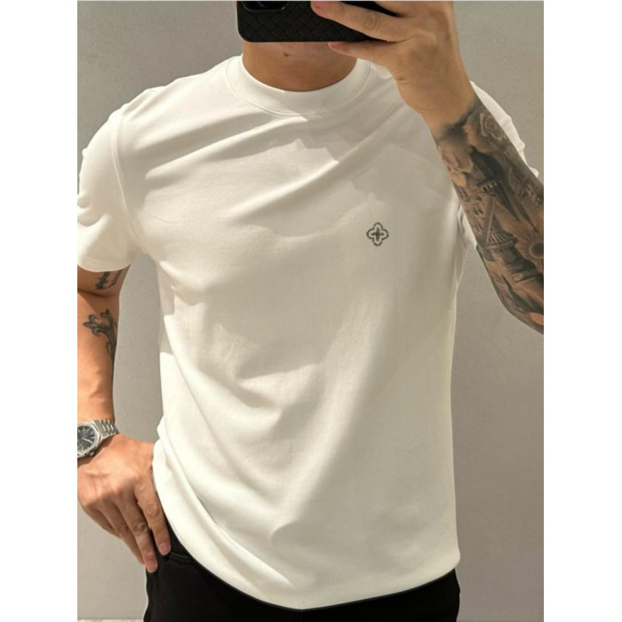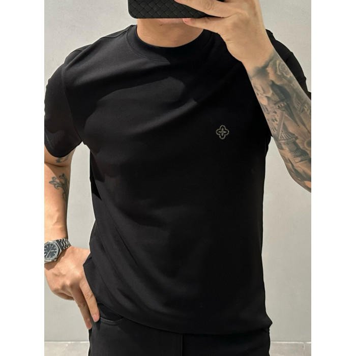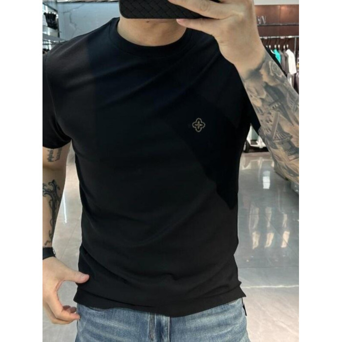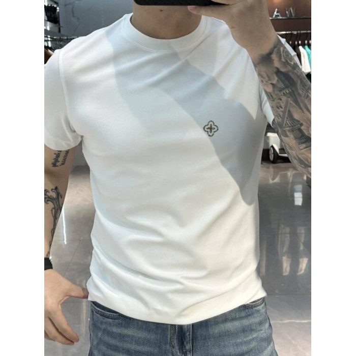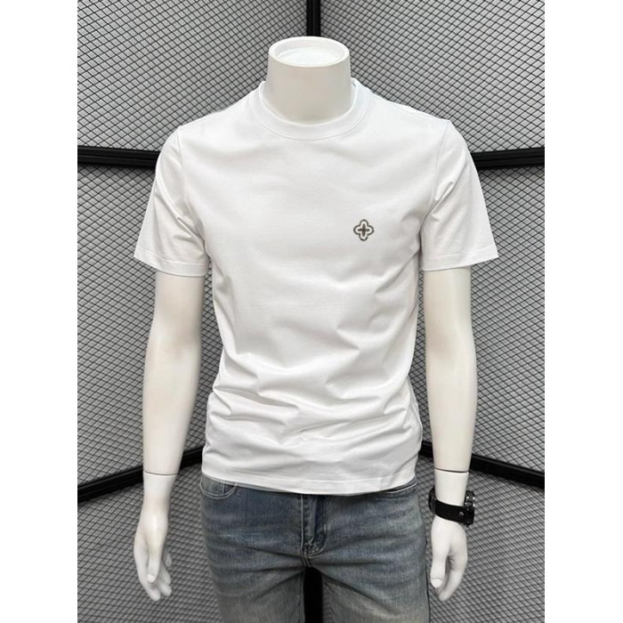 2025夏季新款歐貨簡約燙鑽圓領套頭短袖修身帥氣高級時尚男T恤潮