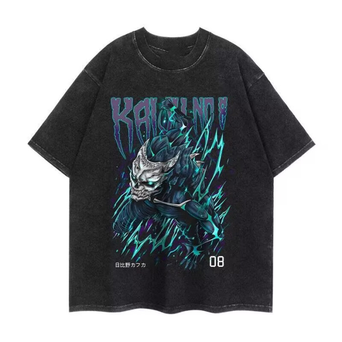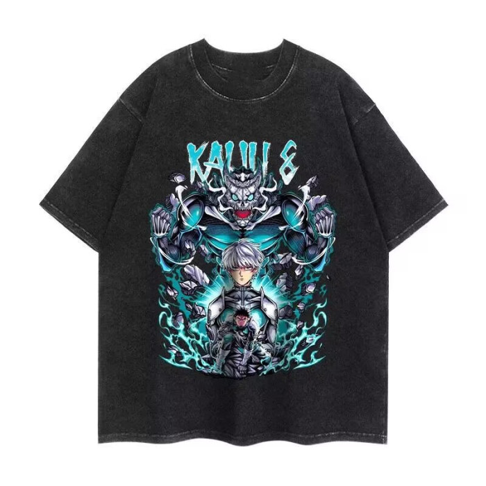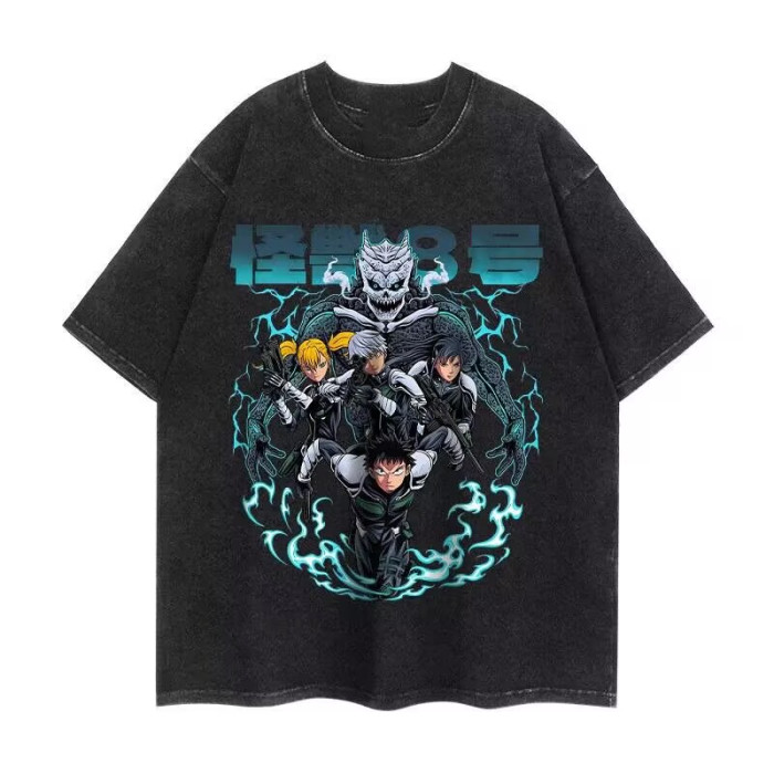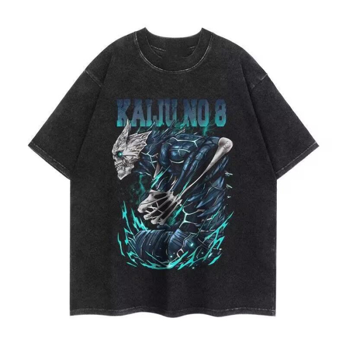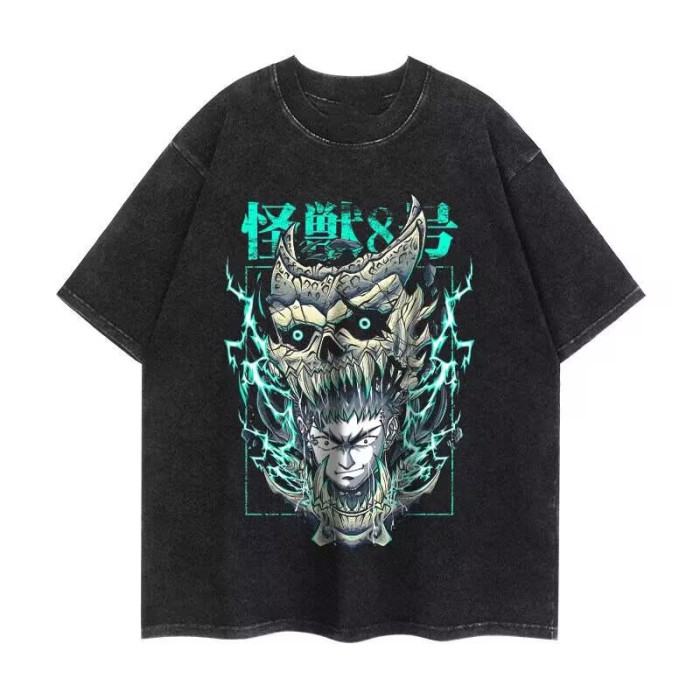 美式復古純棉重磅水洗怪獸8號二次元高街短袖男T恤寬松春夏百搭衣