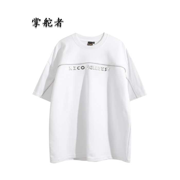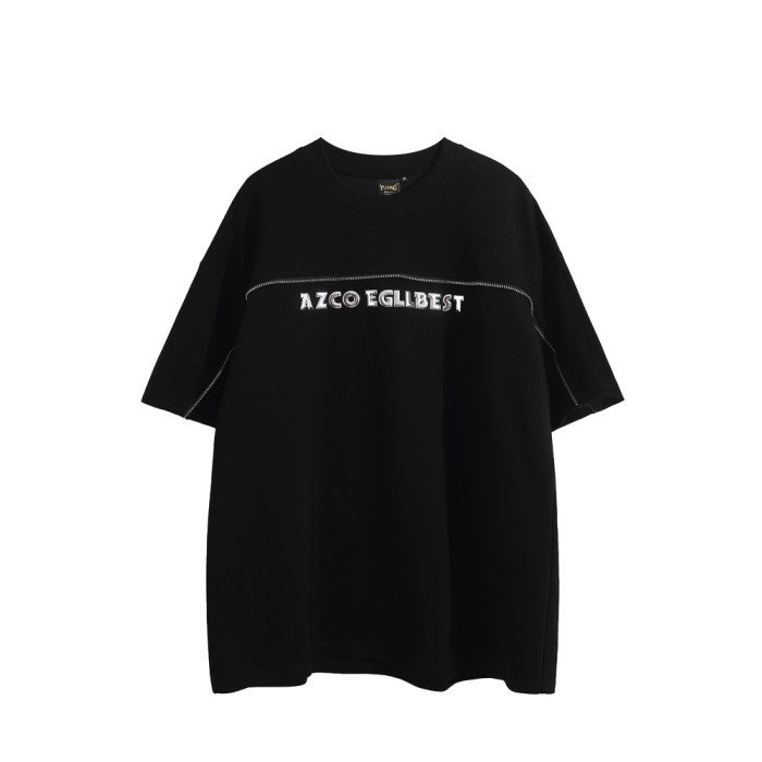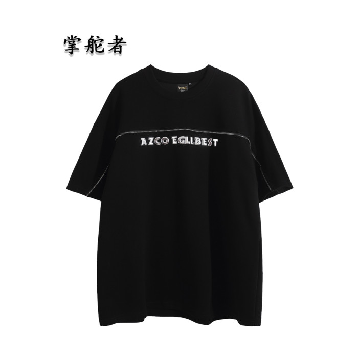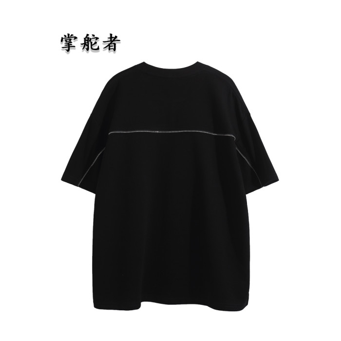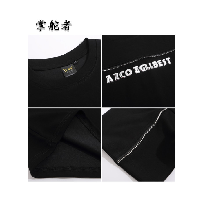 美式高街高級感純棉短袖男T恤潮牌寬松休閒字母拉鍊情侶半袖上衣
