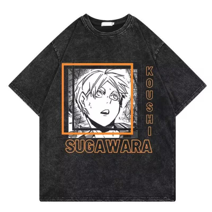 美式復古做舊水洗純棉短袖寬松春夏潮卡通動漫人物男T恤寬松圓領
