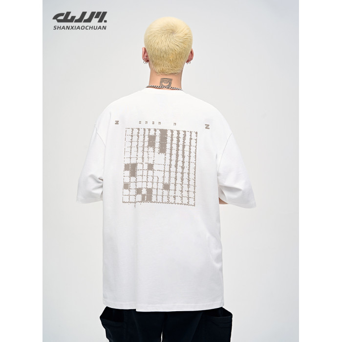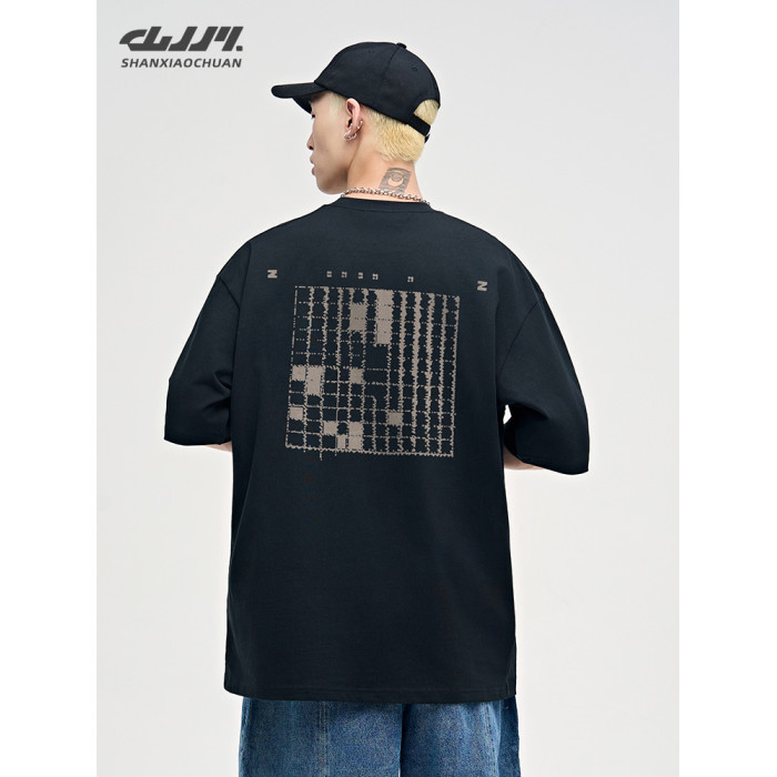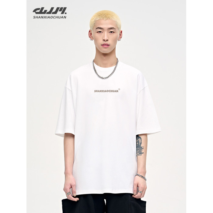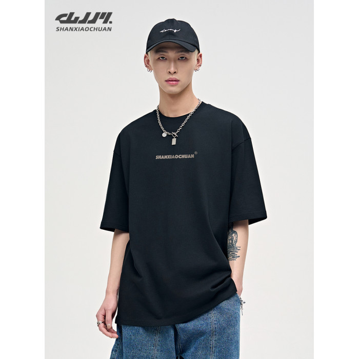 山小川潮牌美式復古短袖男t恤夏季2025新款潮流寬松純棉體恤情侶