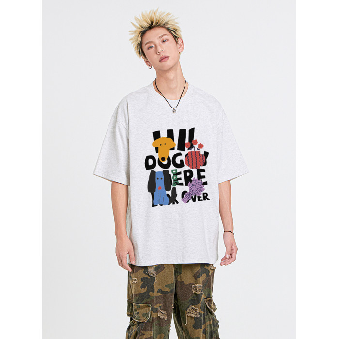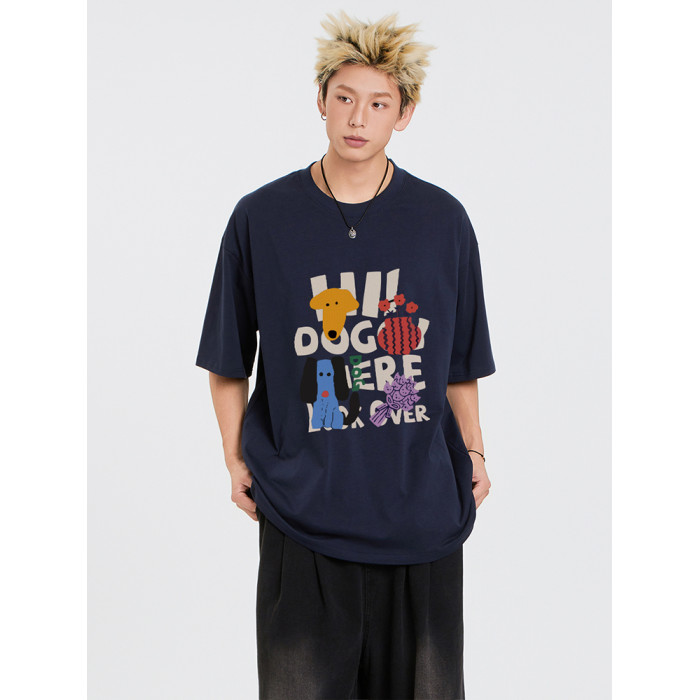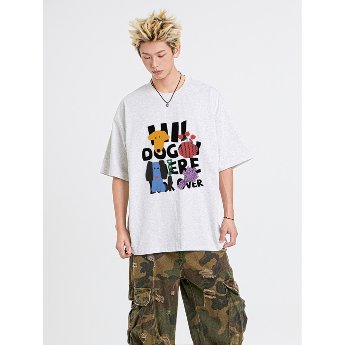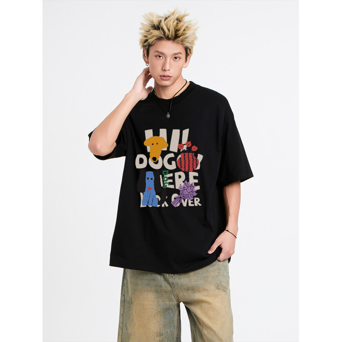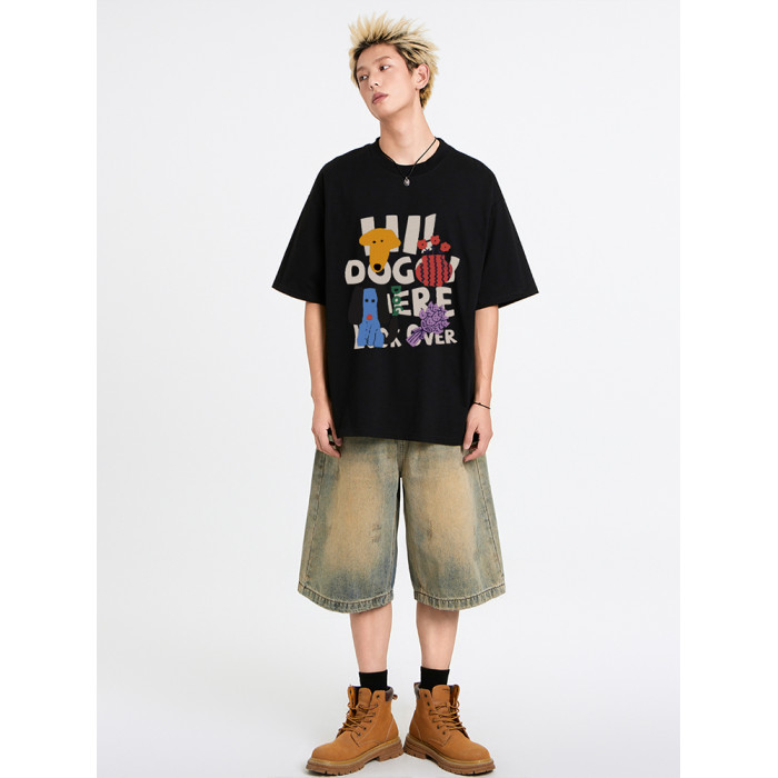 WAINOT280g重磅高街美式復古短袖男T恤夏季寬松圓領上衣2025新款