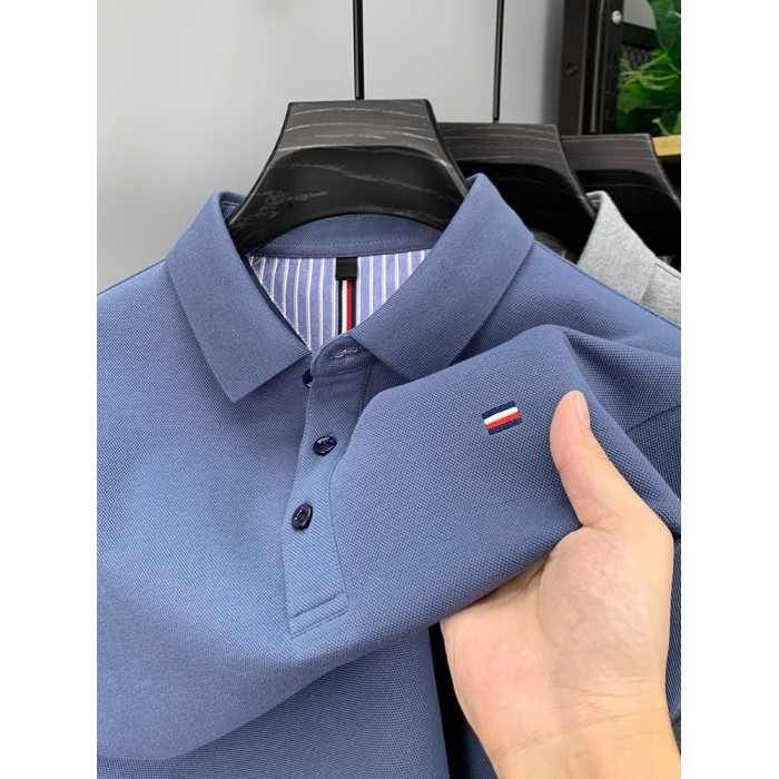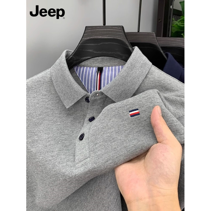 JEEP吉普下擺開衩男t恤純棉高級刺綉翻領長袖Polo衫重磅上衣