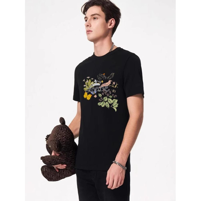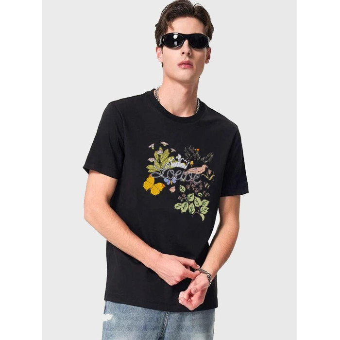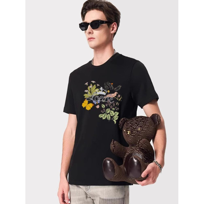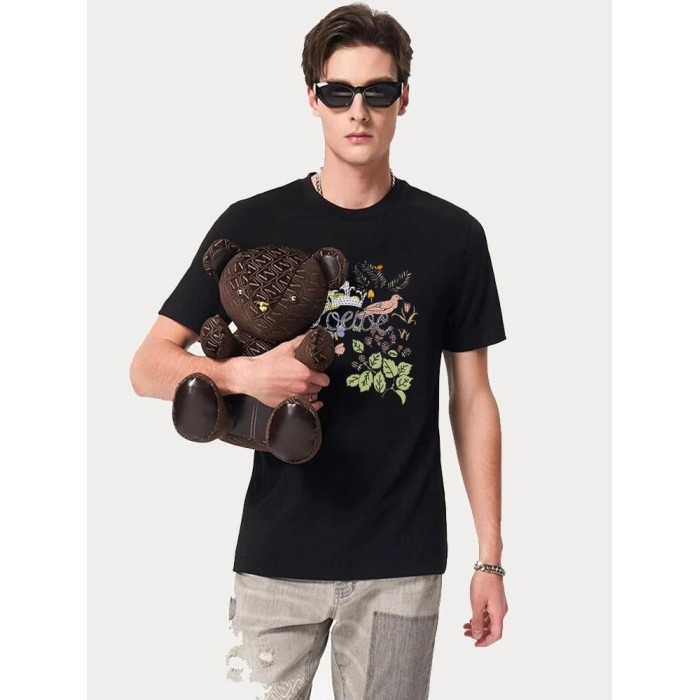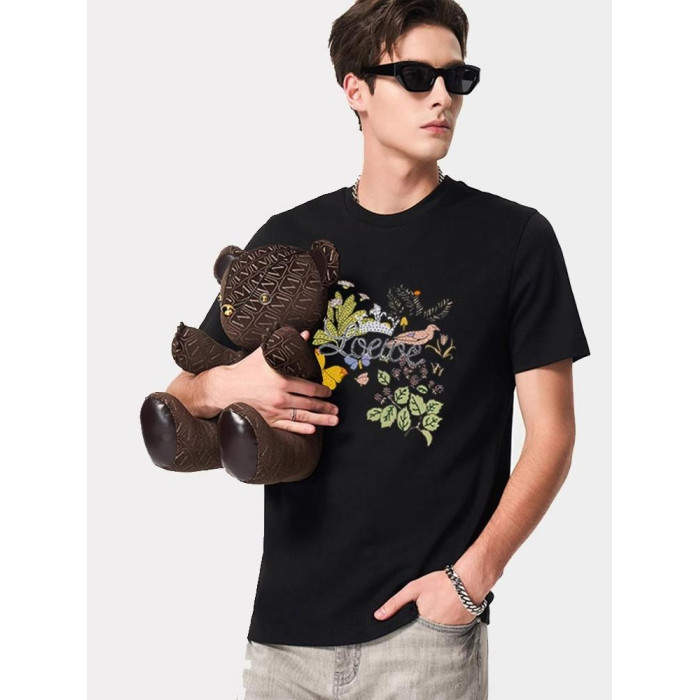 Gick輕奢高級潮牌短袖男T恤歐洲站名牌字母花卉設計感絲光棉體恤