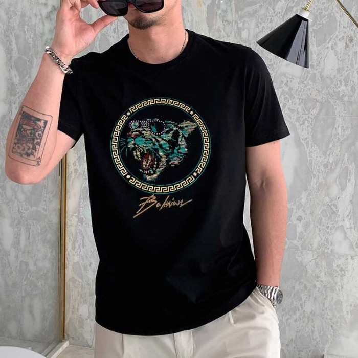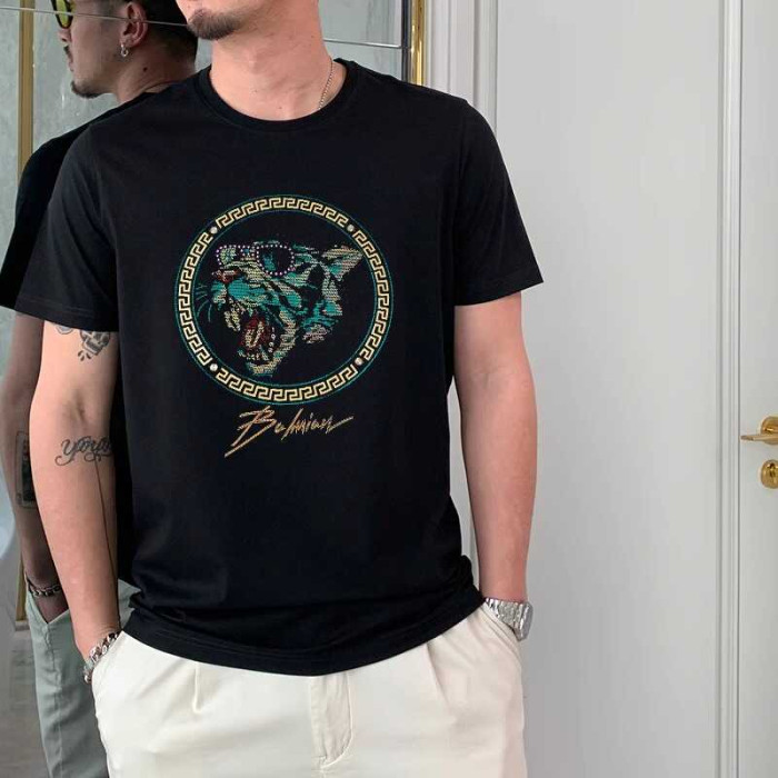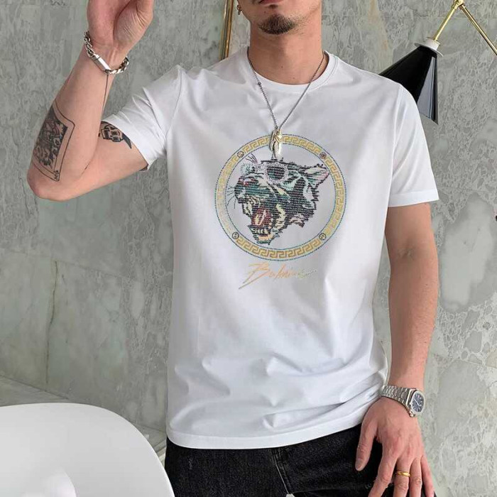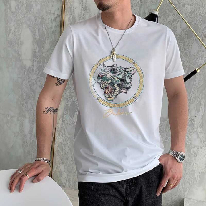歐洲站高質感短袖男T恤新款個性虎頭燙鑽高級潮牌休閒絲光棉體恤
