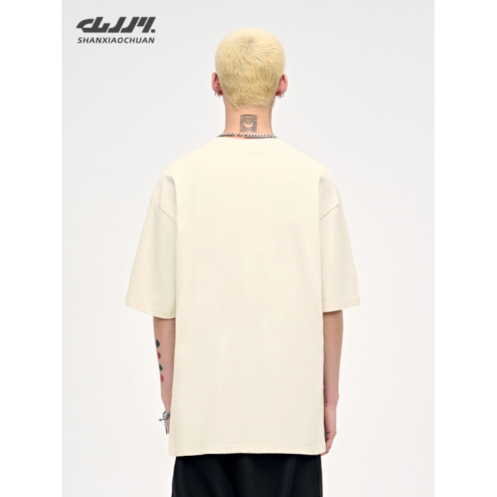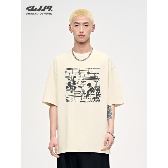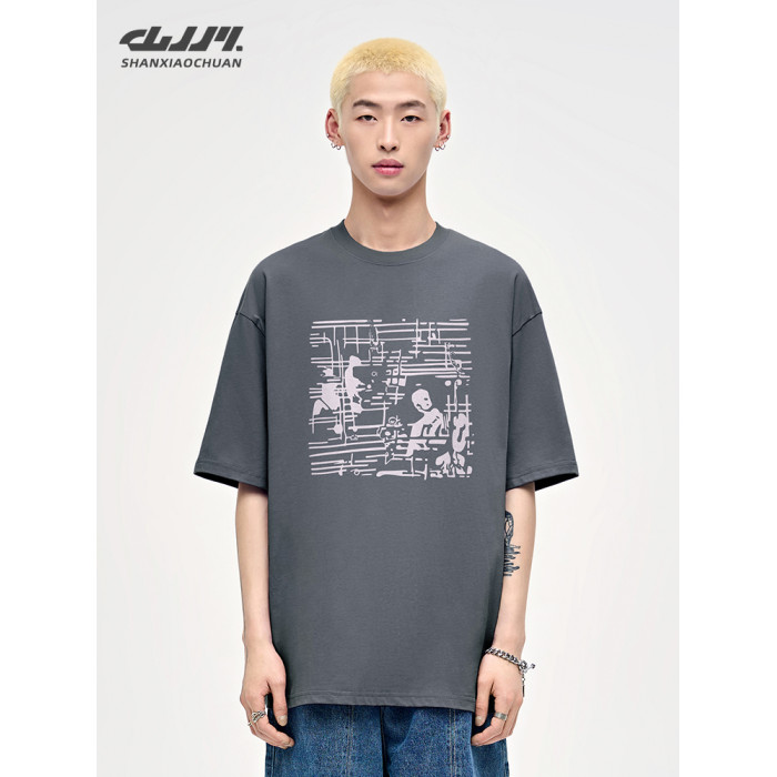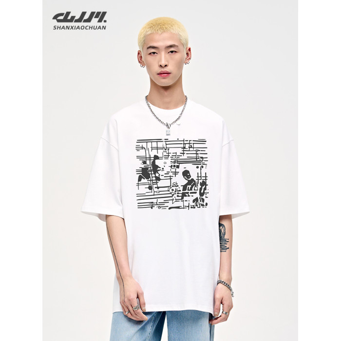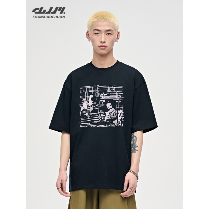 山小川潮牌美式高街抽象印花情侶短袖男t恤夏季ins半袖寬松上衣