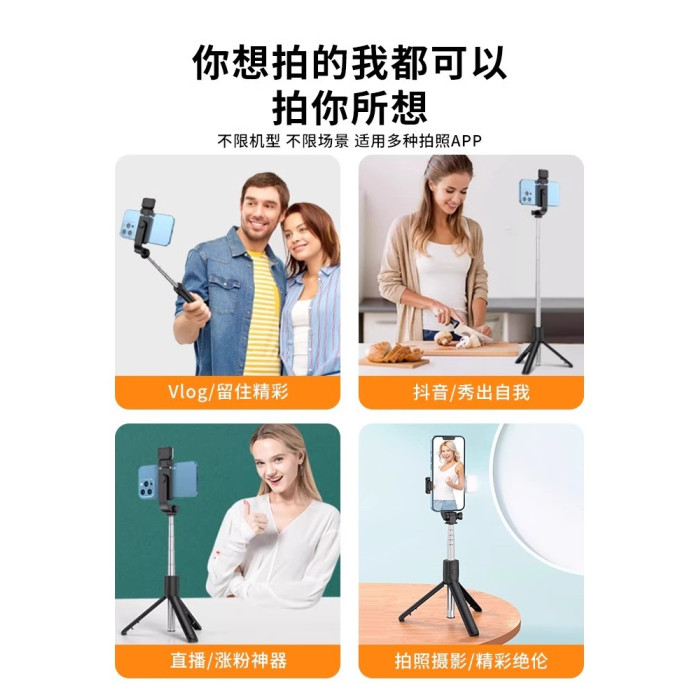 標準有燈款-炫酷黑(100cm)穩固三腳架+迷你便攜+藍牙遙控