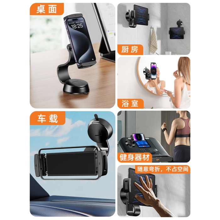 吸盤式牆壁平板手機支架免打孔吸附牆面上粘貼固定夾子壁掛通用神器磁吸ipad衛生間厠所浴室鏡子玻璃廚房專用