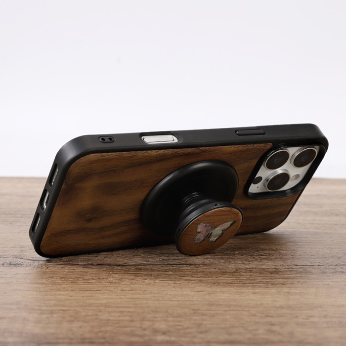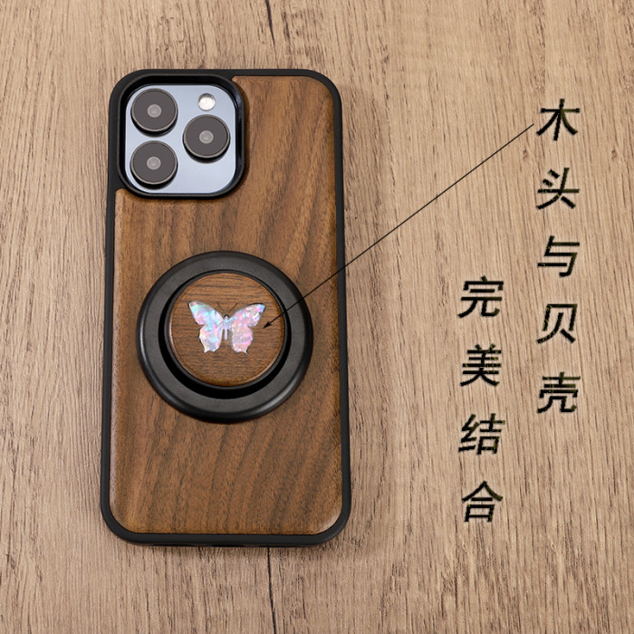 木質磁吸氣囊手機支架胡桃木可攜式可拆卸小衆款貝殼蝴蝶折曡支架