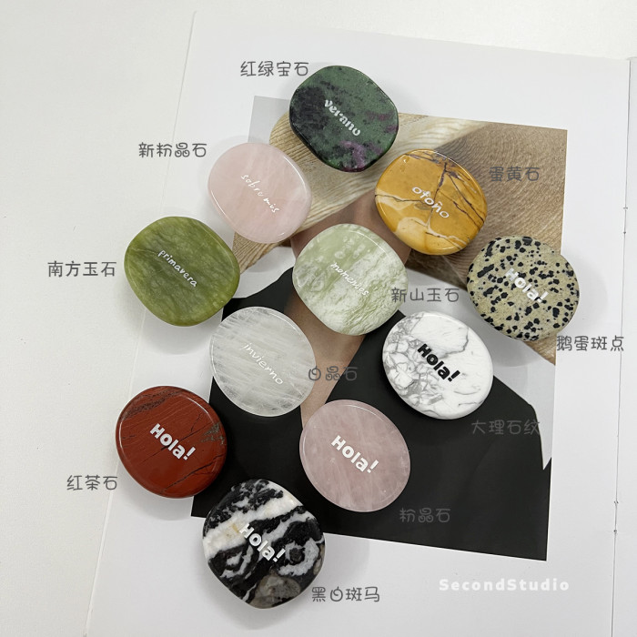 原創高顔值天然石頭手機支架通用百搭小衆設計可伸縮氣囊防摔支架