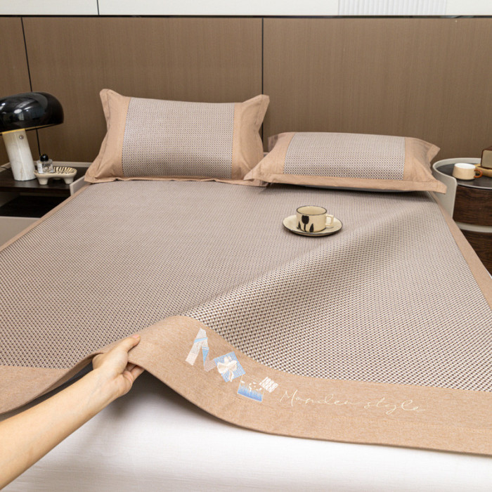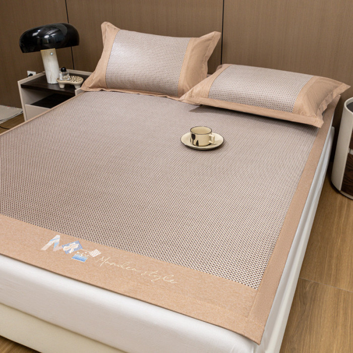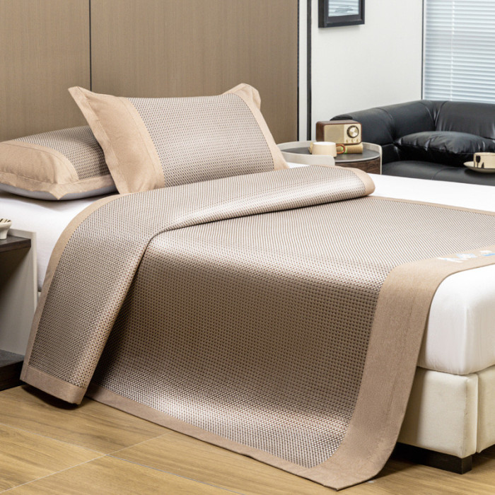 艾草雙面冰藤蓆-金色+200*220cm涼蓆三件套