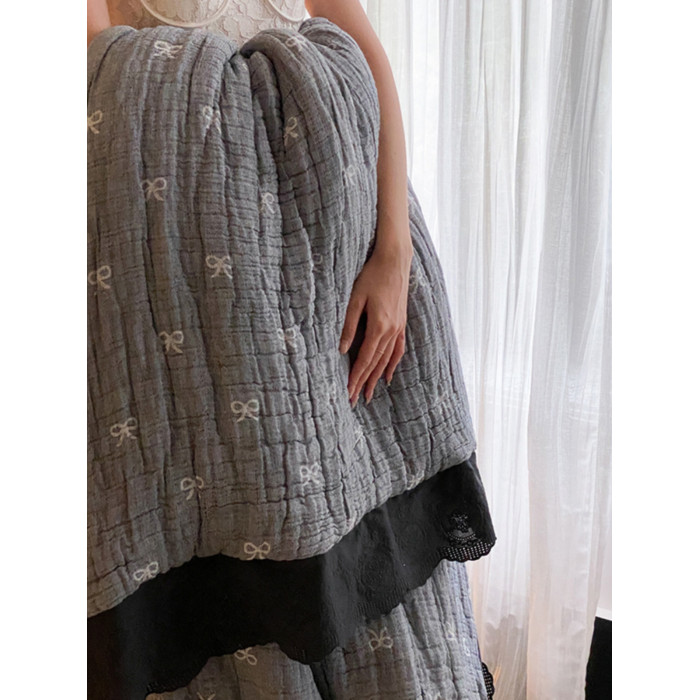 韓式蝴蝶結十層純棉紗布被子冬被春秋被加厚全棉秋冬一體被可機洗