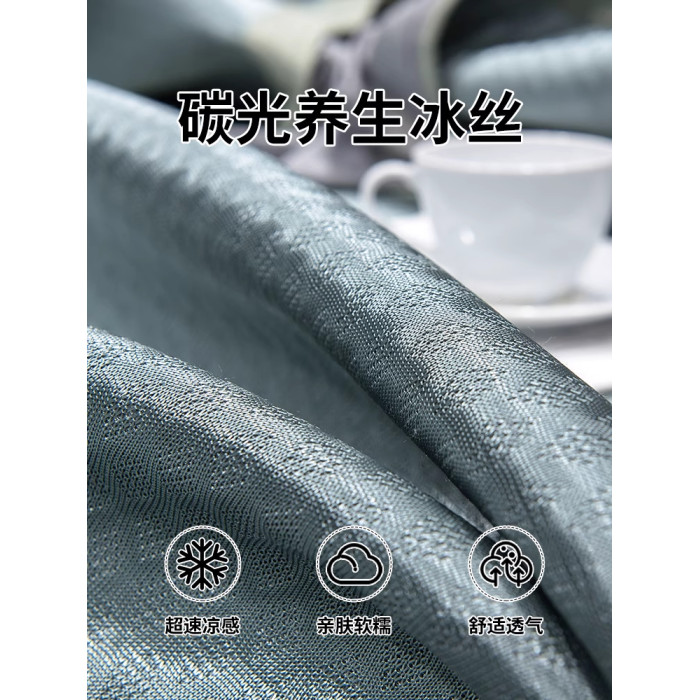 【四件套:小米灰】軟蓆+枕套*2+冰絲毯被