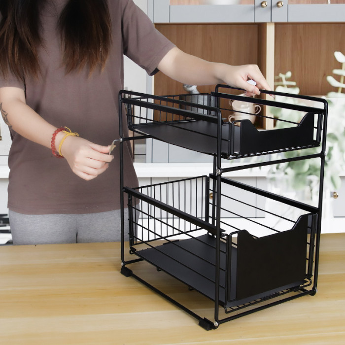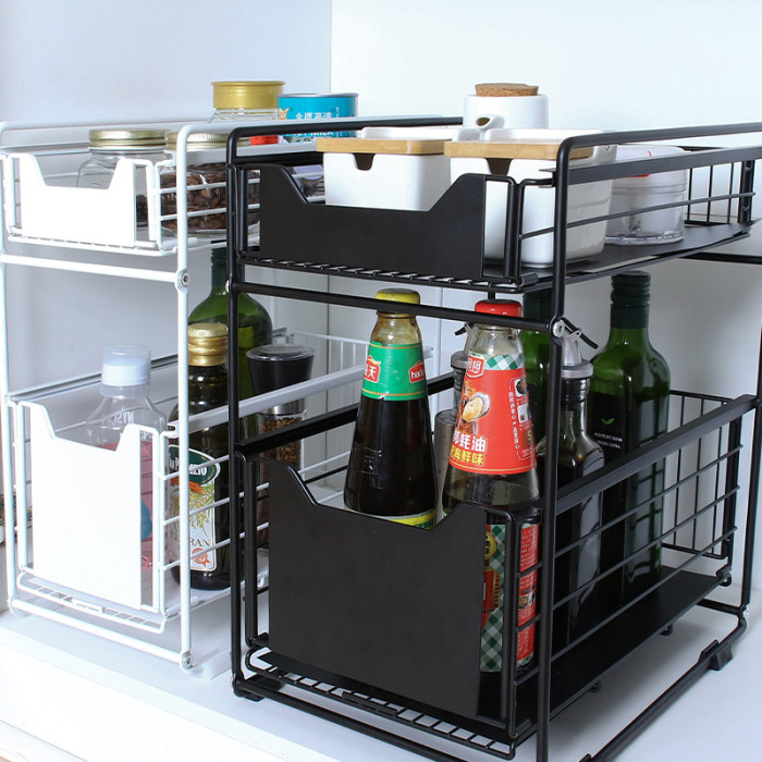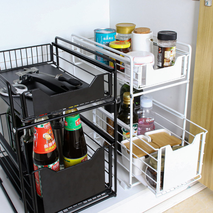 多功能家用廚房下水槽置物架落地多層抽拉可拆卸廚房用品收納架子