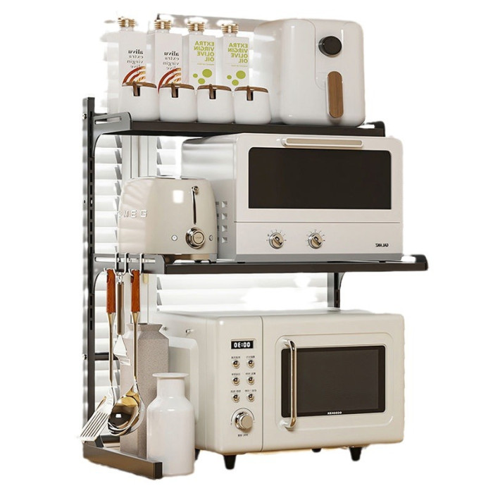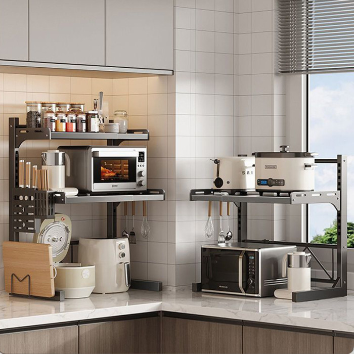 廚房伸縮微波爐架台面置物架多層家用烤箱電鈑煲收納架層高可調節