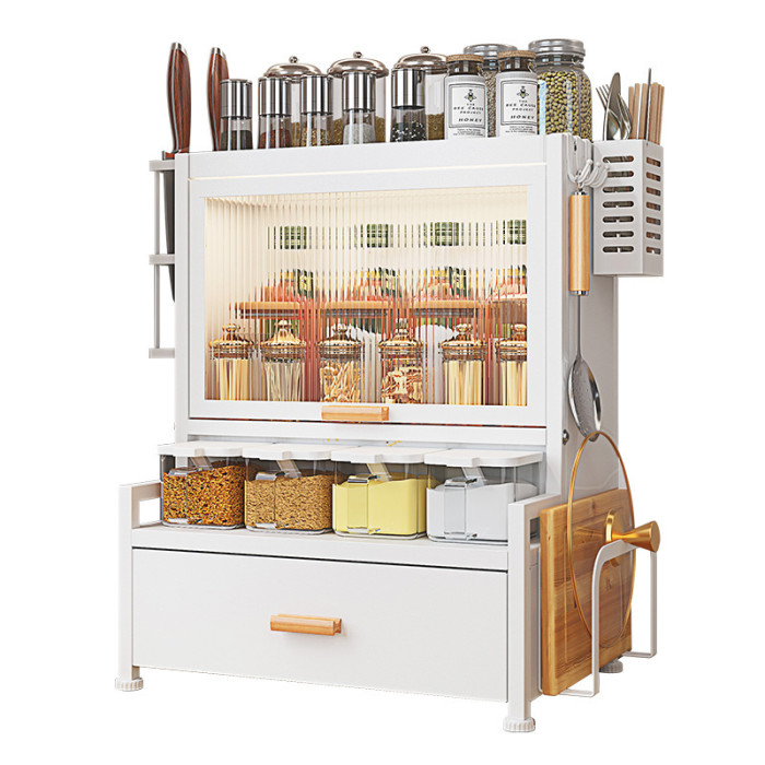 廚房調料置物架台面多功能帶門防塵調味品收納架抽屜式翻蓋儲物櫃
