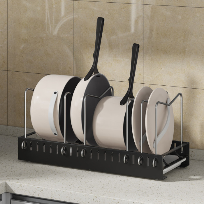 可調節鍋具收納架台面廚房鍋架置物架櫥櫃內分層可抽拉家用鍋蓋架