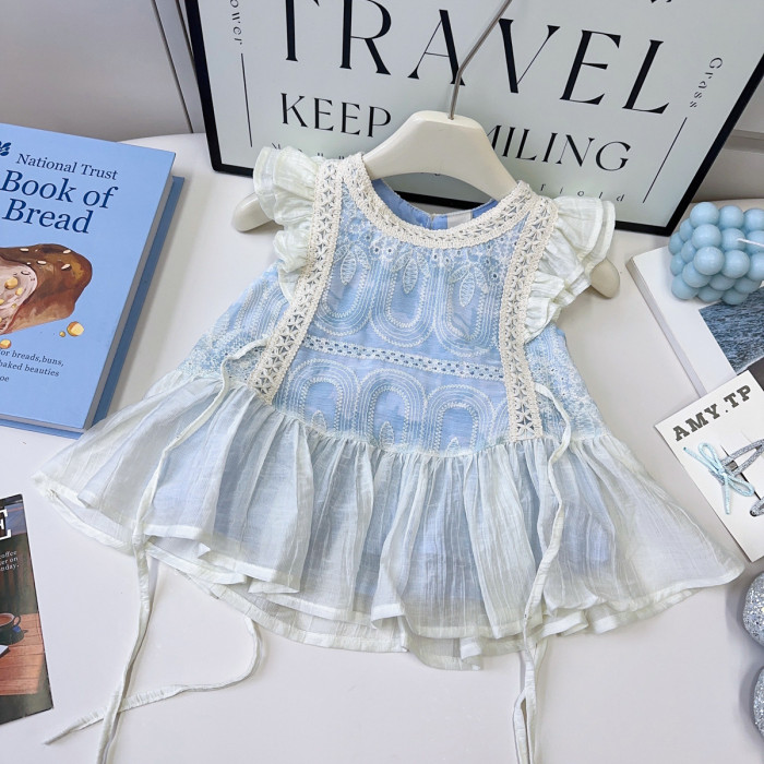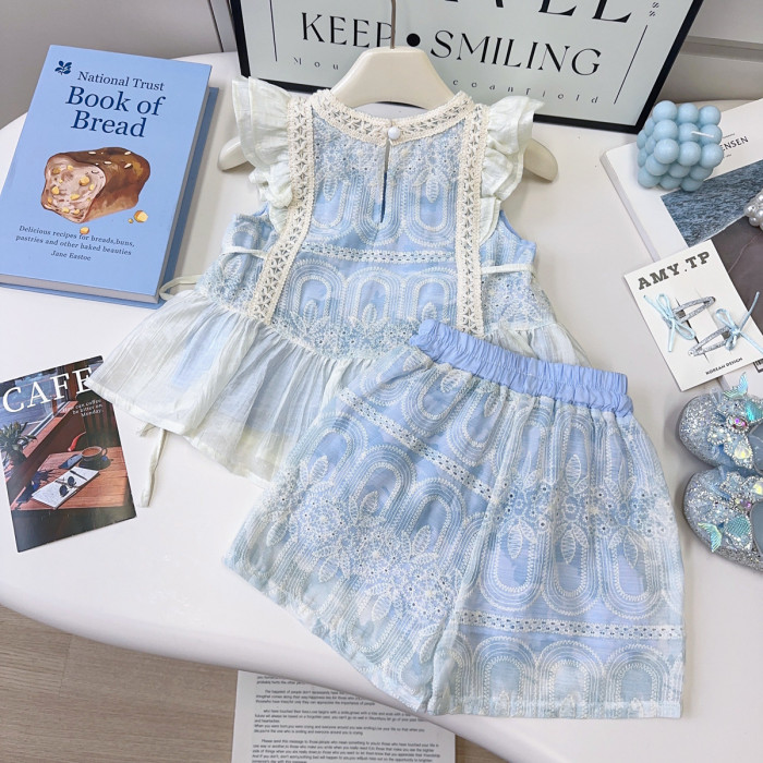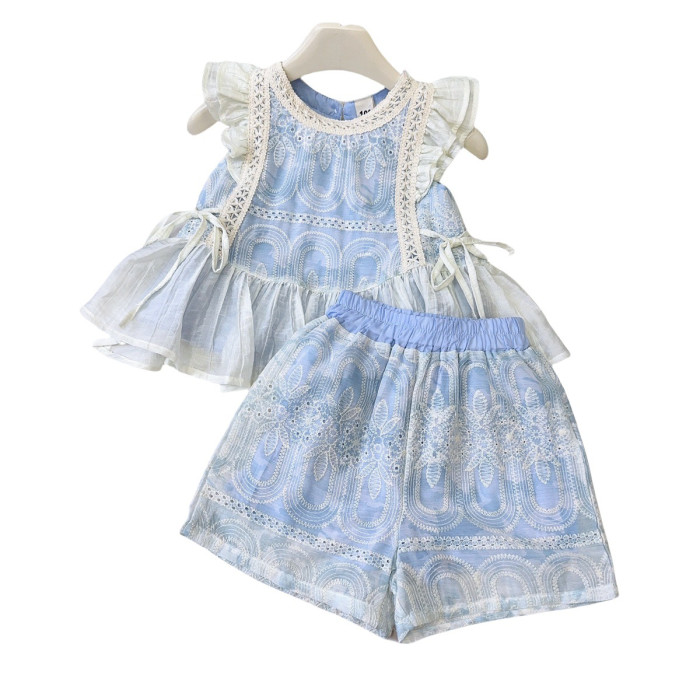 女童套裝夏季新款洋氣女寶寶小香風蕾絲上衣短褲兩件套CM1252
