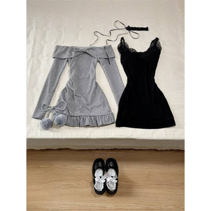顔色 | 黑色吊帶裙+灰色裙子套裝#【精選品牌】 |