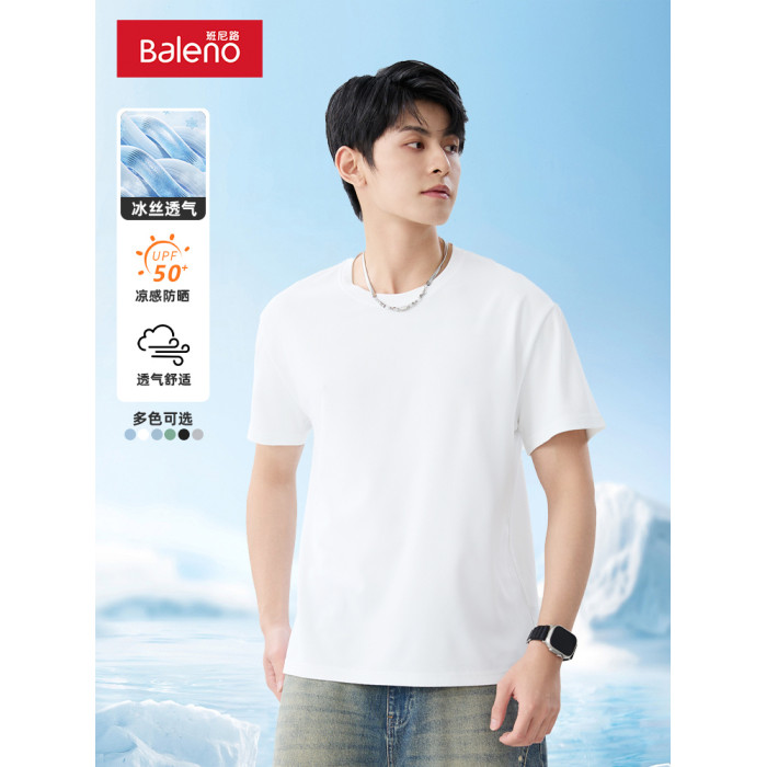班尼路冰絲男t恤夏季新款男士速乾短袖寬松排汗涼感運動休閒半袖