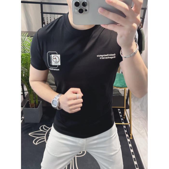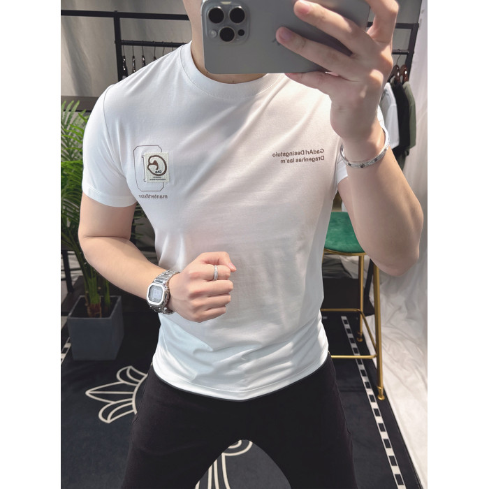 2025夏季歐洲站短袖男T恤美式重磅假口袋絲光棉潮牌半袖上衣帥氣