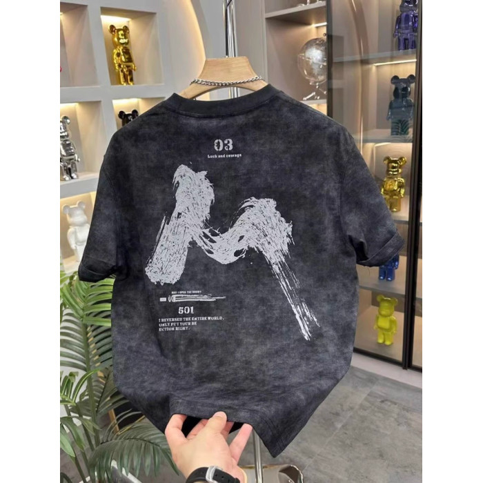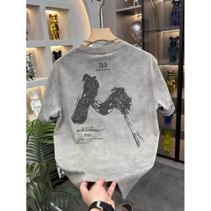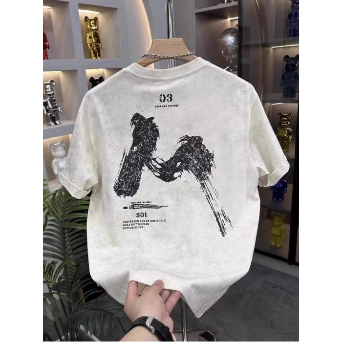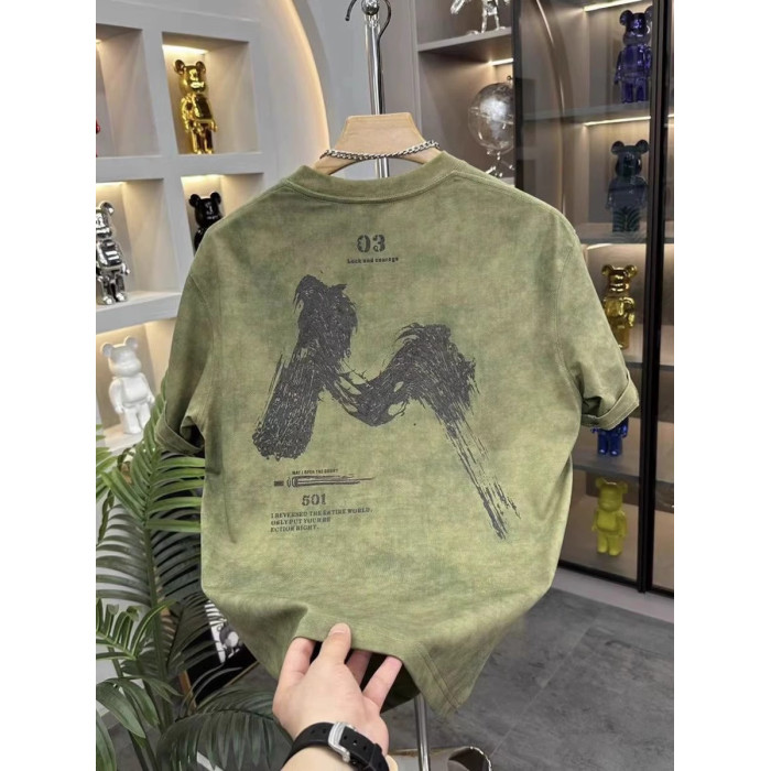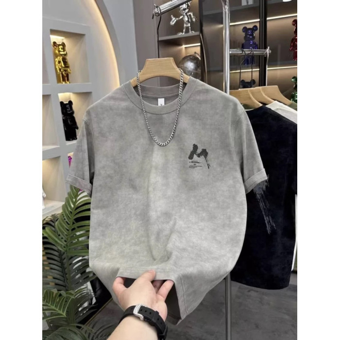 夏季新款水洗紥染印花短袖男t恤潮流百搭圓領休閒ins潮牌純棉上衣