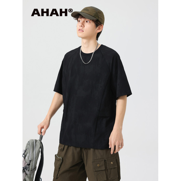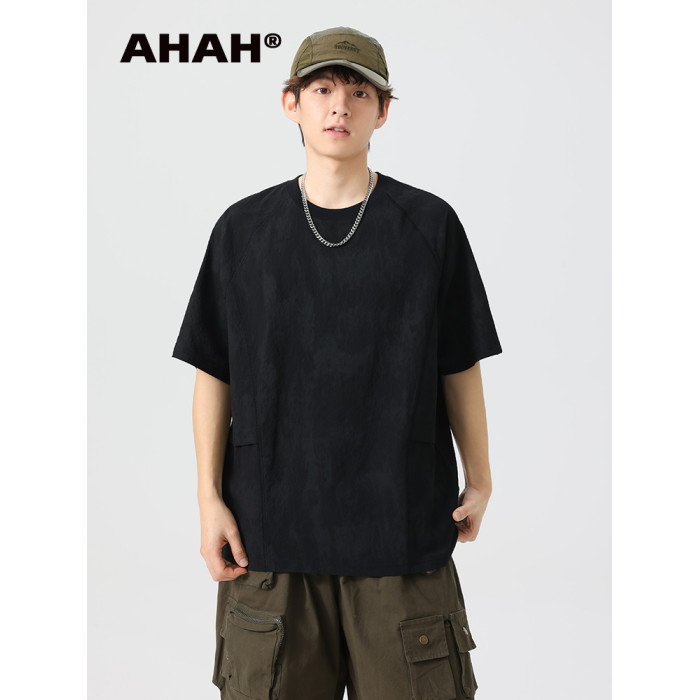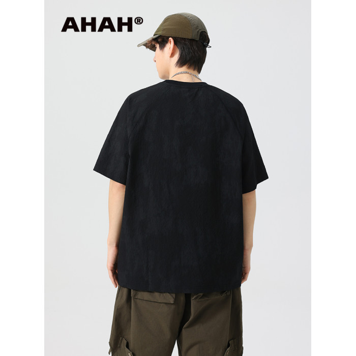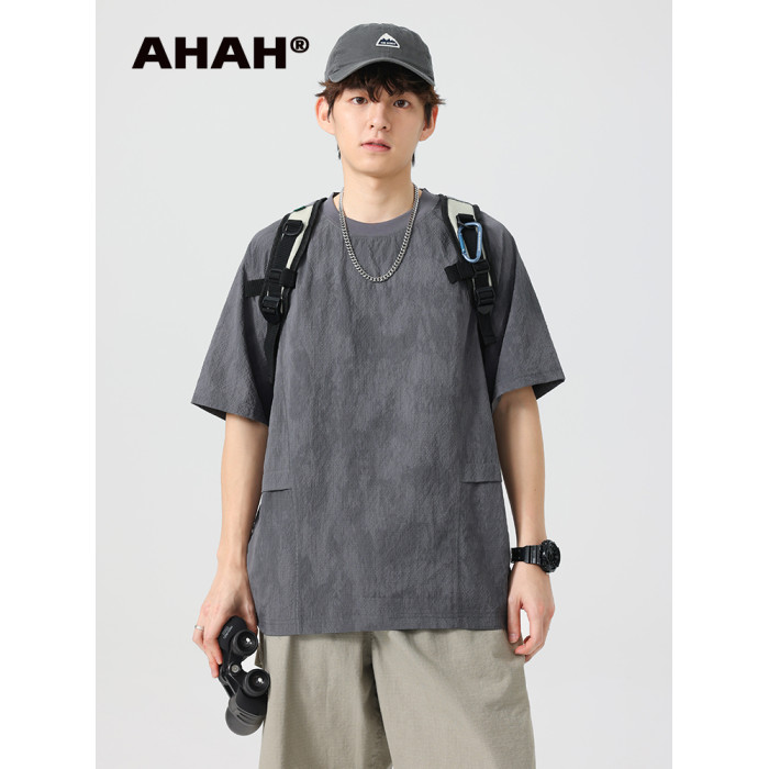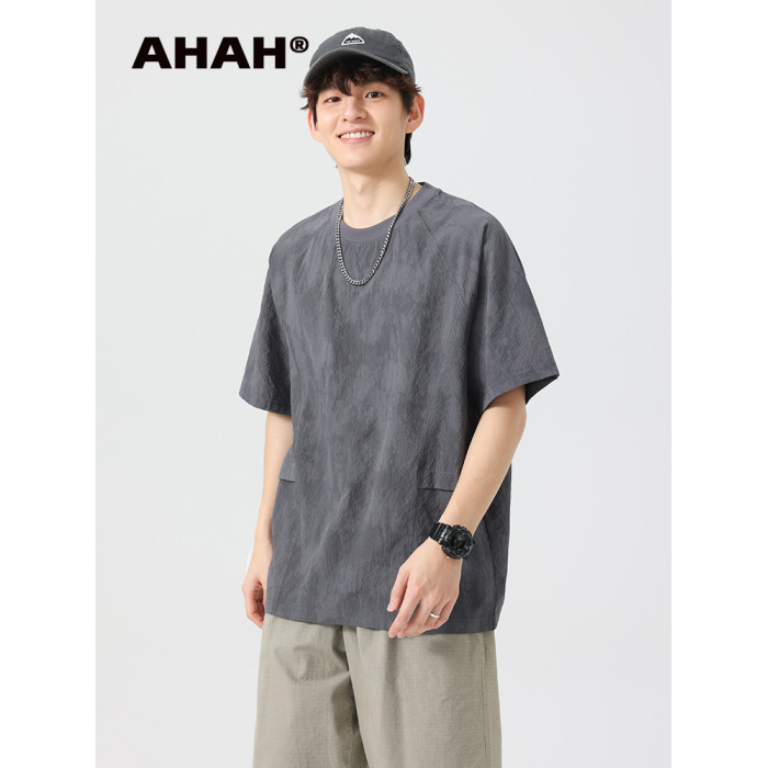 AHAH日系潮牌短袖男t恤2025夏季新款休閒情侶上衣圓領五分袖體恤