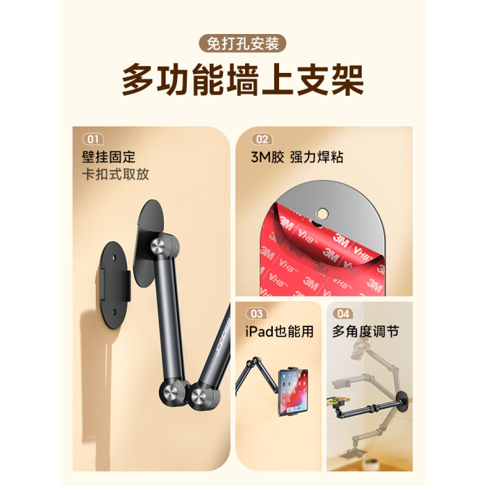 小天手機支架平板ipad牆上掛牆架床頭桌面懶人伸縮可調節壁掛式支撐架廚房衛生間浴室厠所固定支架懸臂托架