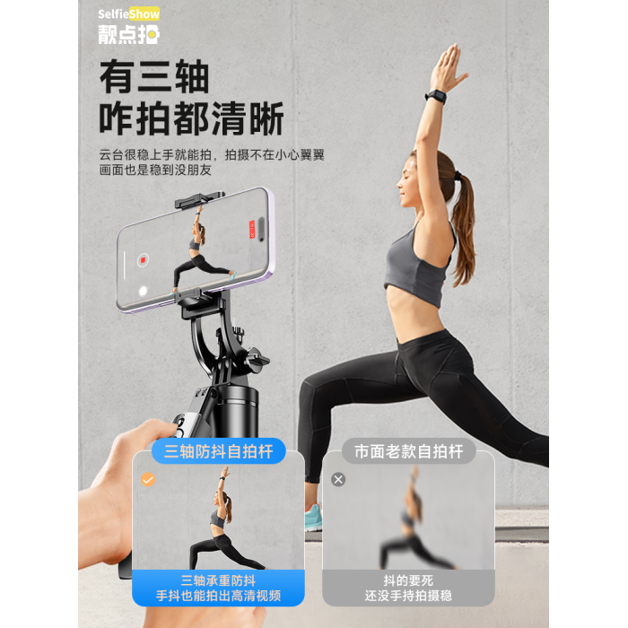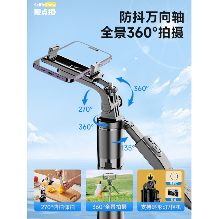 【靚點拍】2025新款自拍桿防抖落地三腳架手機通用拍照神器360度旋轉手持雲台旅遊可攜式多功能一體式拍攝支架