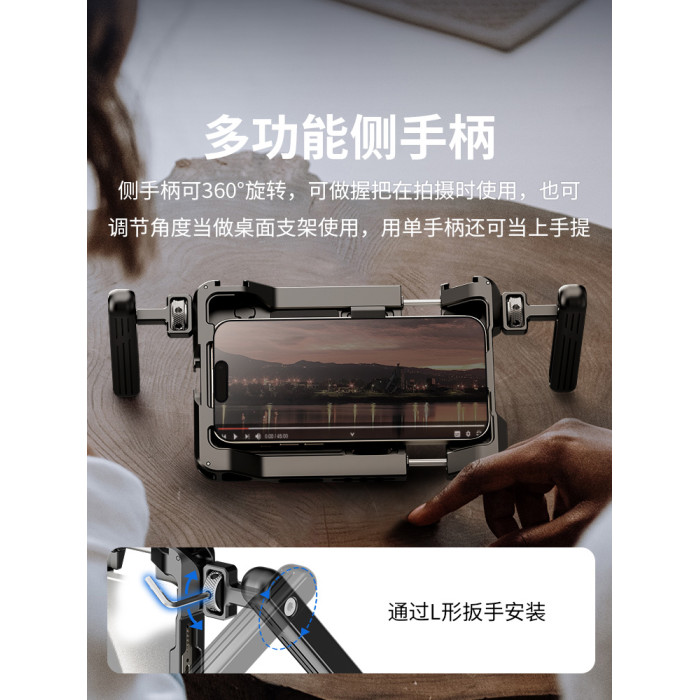 【迷你版】雙手持手機兔籠套裝+RGB補光燈+桌面三腳架