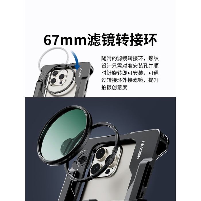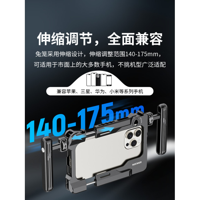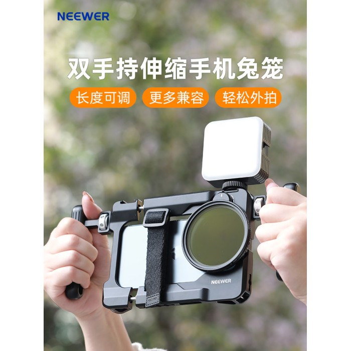 neewer紐爾手機兔籠攝影攝像支架穩定器可伸縮調節雙手持裝備手機濾鏡拓展兔籠適用蘋果安卓手機通用兔籠