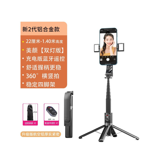 新一代1.4米手持自拍桿】四腳架自拍桿手機通用架防抖支架拍照神器手機一體式美顔燈藍牙遙控vlog旅行可攜式桿