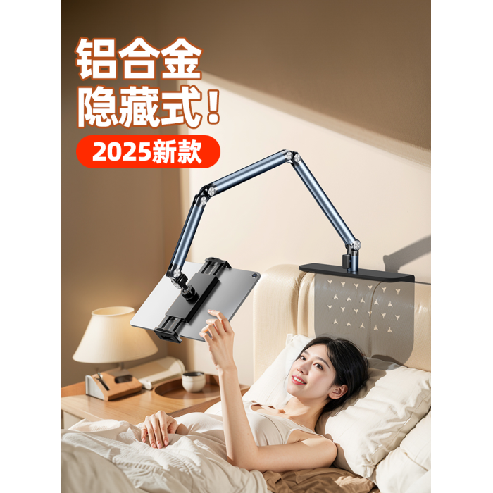 2025新款床頭手機架懶人支架平板電腦床上支撐架ipad追劇多功能桌面落地鋁合金懸臂可旋轉手機支架隱藏式架子