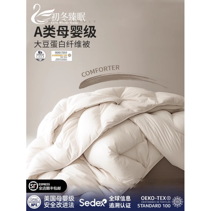 高級大豆纖維被冬被加厚保暖全棉被子被芯春秋被喜被拉鍊款子母被