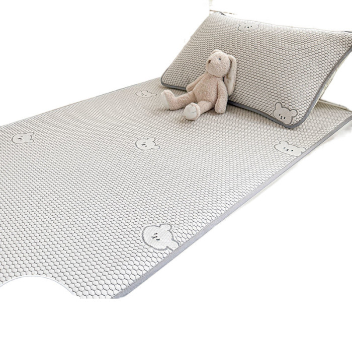 PE涼感升級冰豆豆涼蓆-小熊灰80*190cm綁帶款【涼蓆+枕套一衹