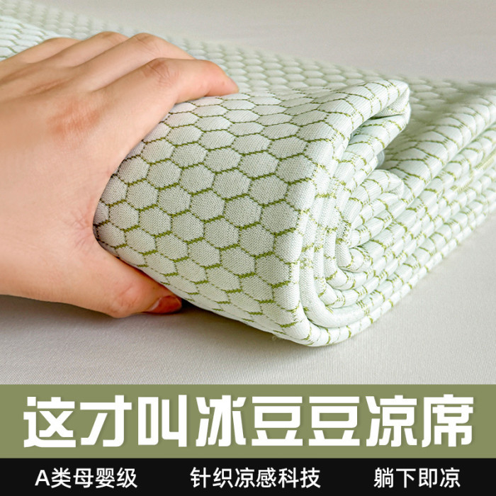 PE涼感升級冰豆豆涼蓆-小熊綠90*200cm綁帶款【涼蓆+枕套一衹
