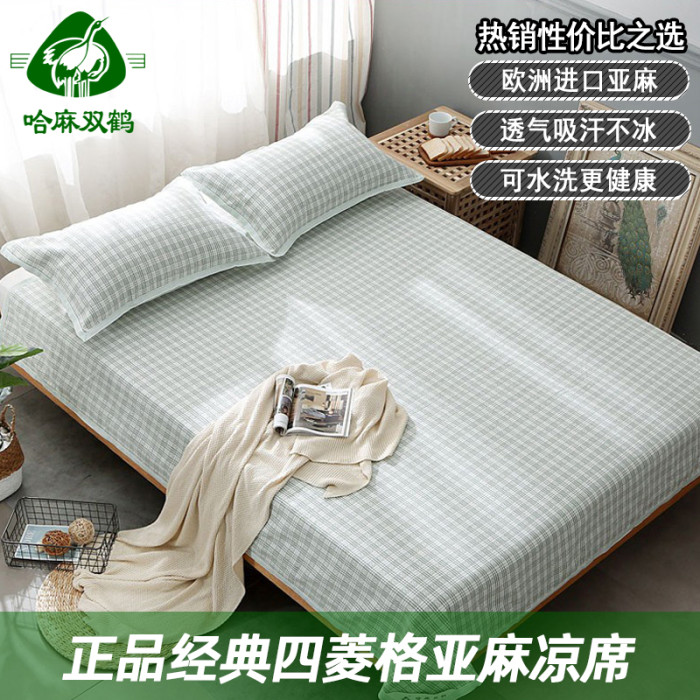 哈麻雙鶴天然亞麻涼蓆加厚透氣夏季麻棉混紡涼蓆1.5m/1.8米可水洗