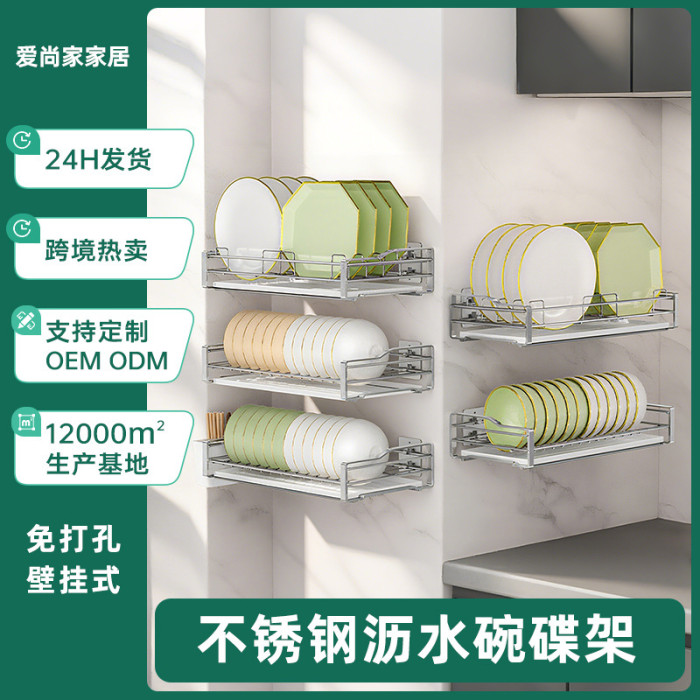 不鏽鋼瀝水碗碟架免打孔牆上壁掛碗碟收納架碗盤置物架廚房收納
