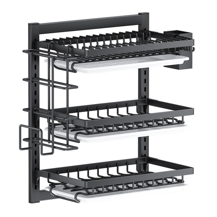 廚房壁掛碗碟架可調節高度碗盤收納架多功能刀具筷子筒架菜板架