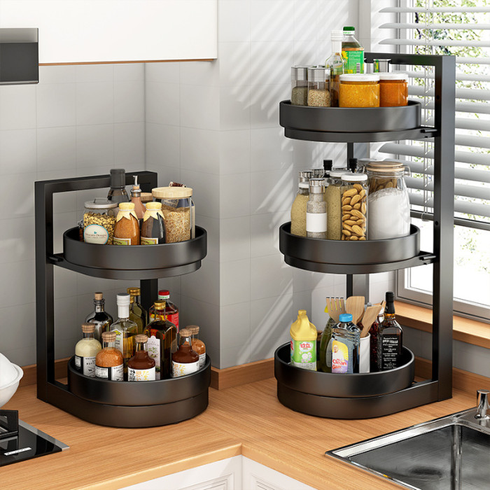 廚房調料置物架鹽醬醋調味料品瓶罐收納盒旋轉台面多功能置物架子